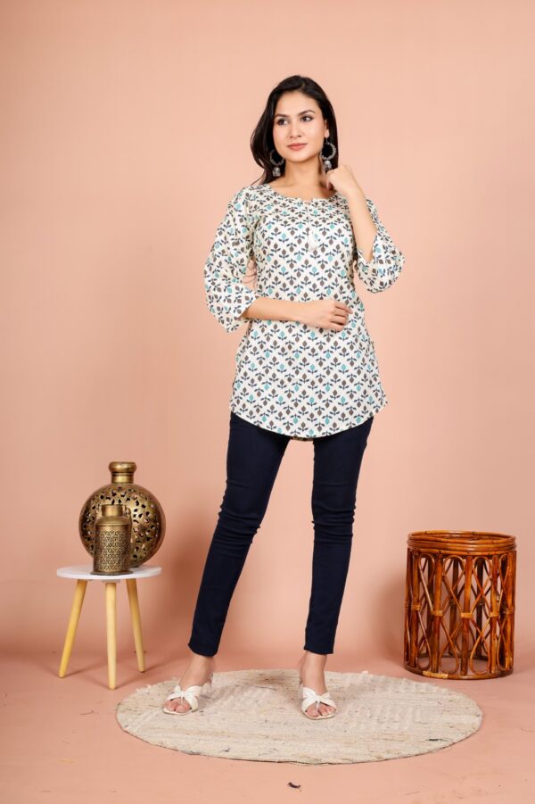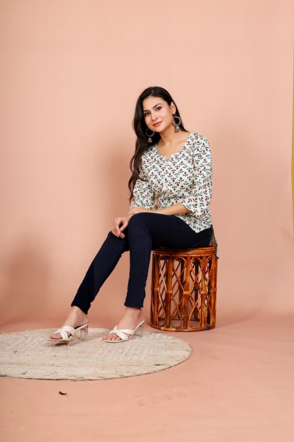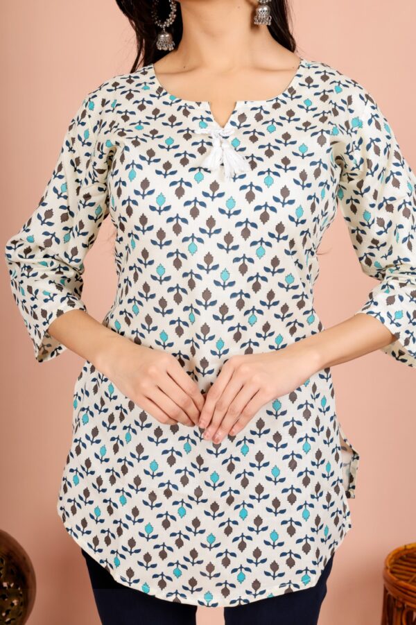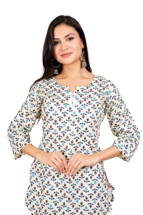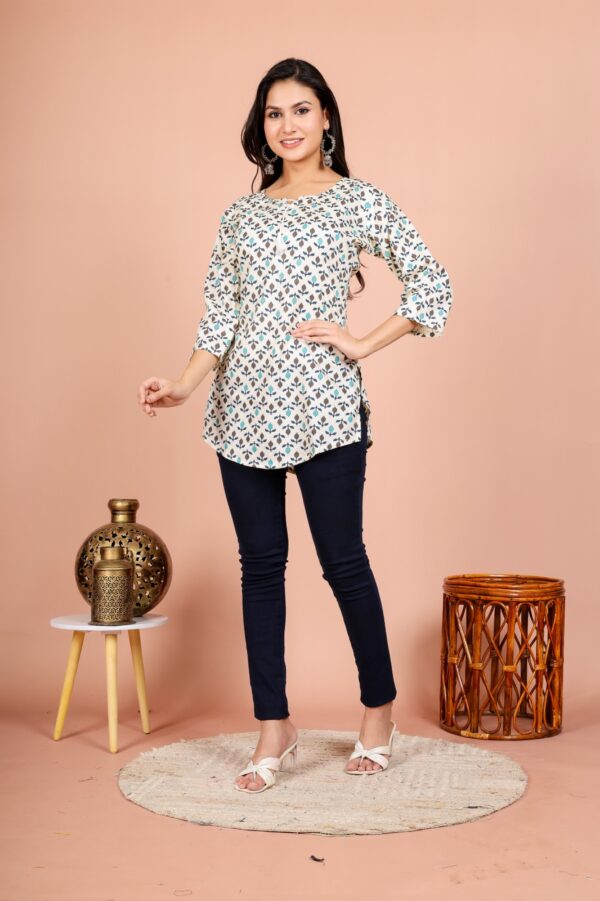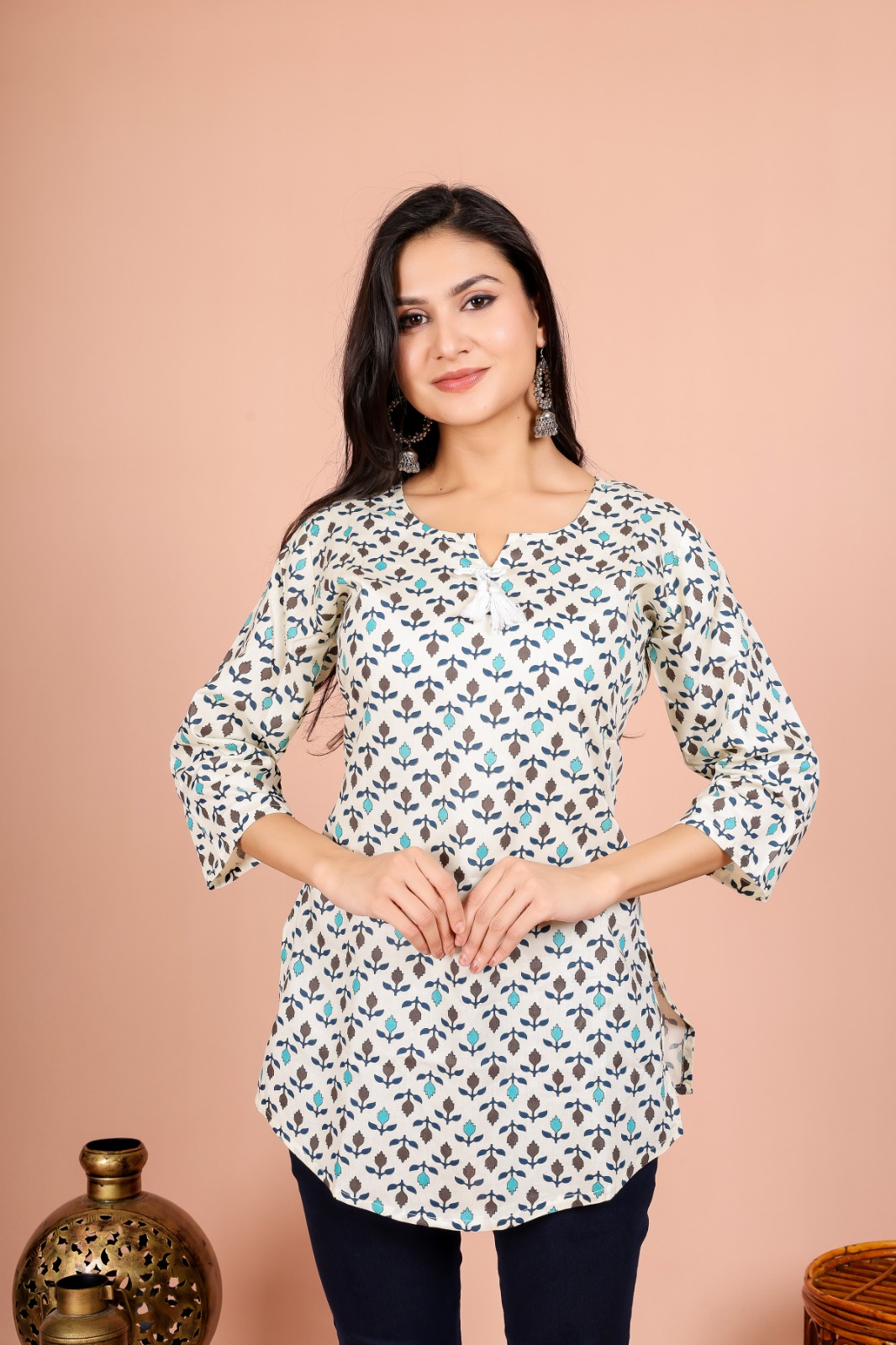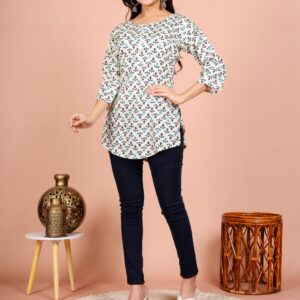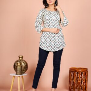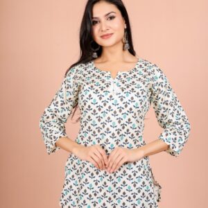Elevate your everyday style with this printed short kurti, designed for comfort and elegance. Crafted from soft, breathable fabric, this kurti is perfect for casual wear, college, office, or daily outings. The vibrant print adds a touch of charm, while the short length keeps it stylish and easy to pair with jeans, leggings, or trousers.